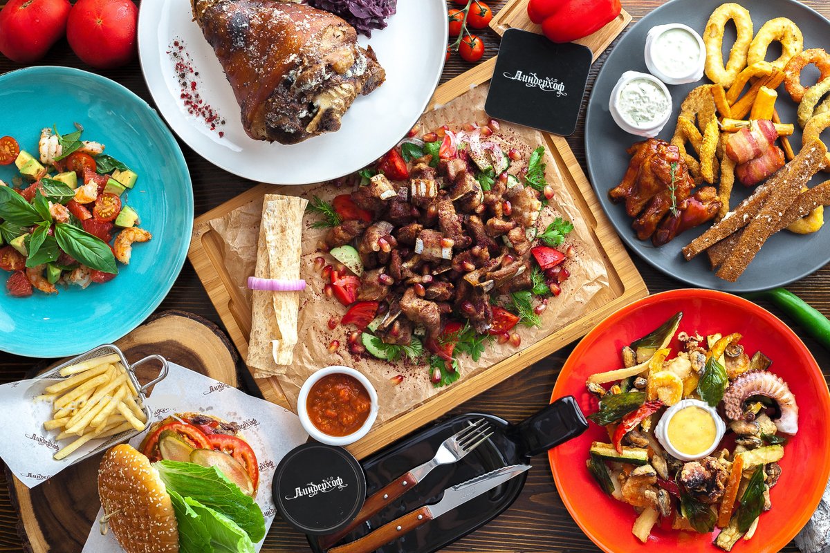 Мы предлагаем блюда нескольких видов кухонь: европейской (немецкой), японской, паназиатской, но, наверное, самой популярной из них является европейская. Наши повара знают, как правильно сохранить натуральный вкус главных составляющих в блюде (мяса, рыбы, овощей), не перебивая его ароматом специй.